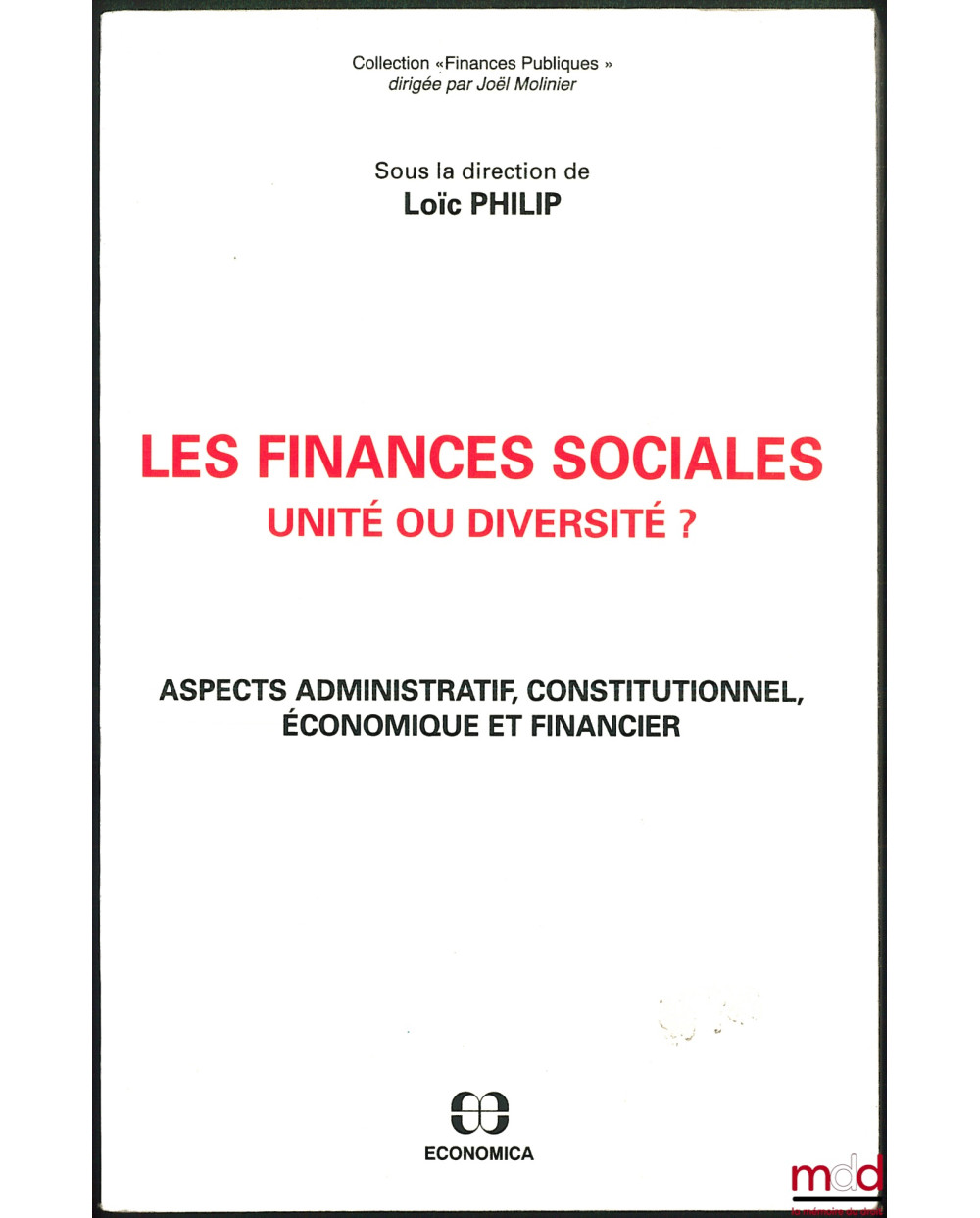 LES FINANCES SOCIALES, UNITÉS OU DIVERSITÉ ? Aspects administratif, constitutionnel, économique et financier, sous la dir. de Loïc Philip, coll. Finances publiques
