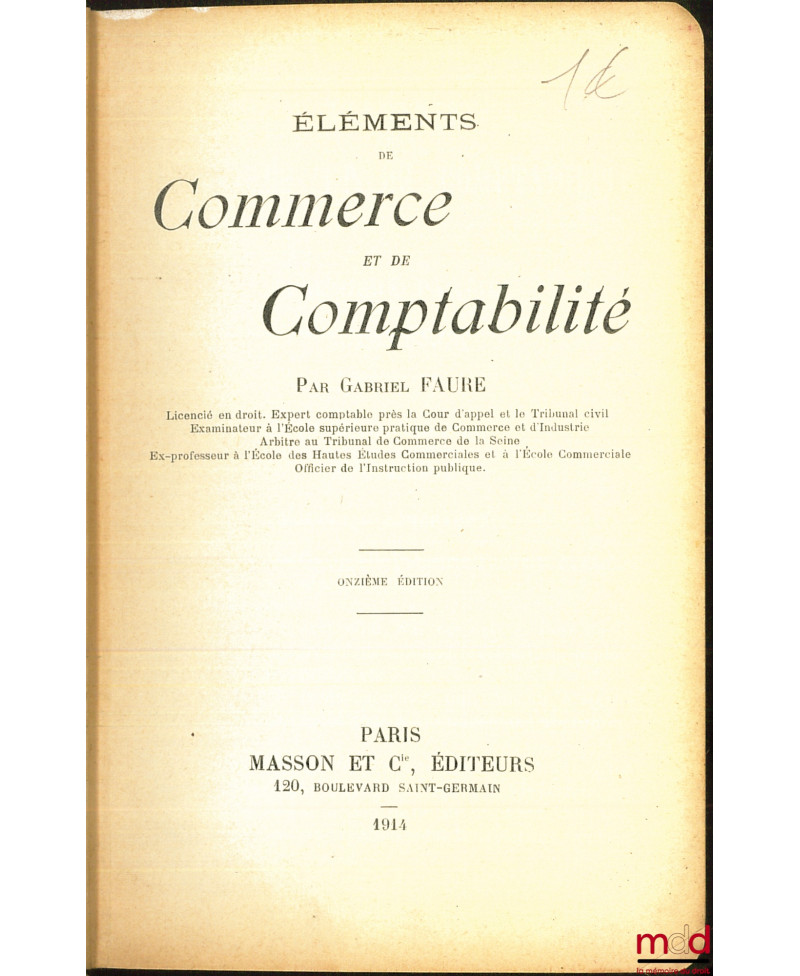 ÉLÉMENTS DE COMMERCE ET DE COMPTABILITÉ GÉNÉRALE, 11e éd.,