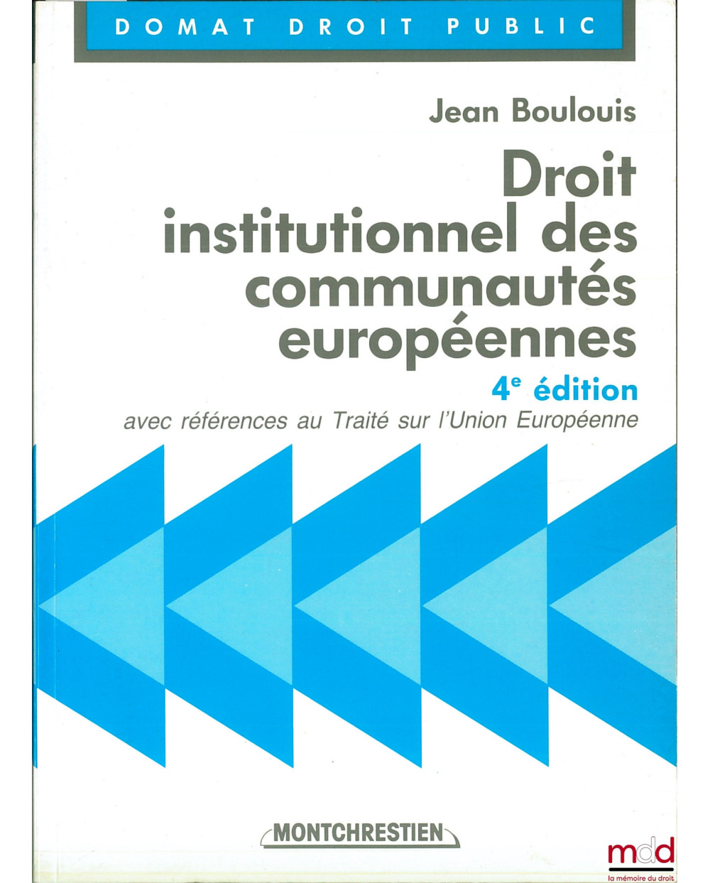 DROIT INSTITUTIONNEL DES COMMUNAUTÉS EUROPÉENNES, avec références au Traité sur l’Union Européenne, 4e éd., coll. Domat Droit public