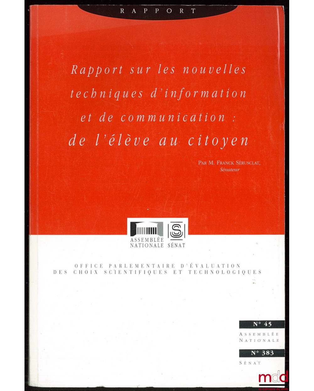 RAPPORT SUR LES NOUVELLES TECHNIQUES D’INFORMATION ET DE COMMUNICATION : DE L’ÉLÈVE AU CITOYEN, coll. Les rapports de l’Assemblée nationale n° 45 / Sénat n° 383 de l’Office parlementaire d’évaluation des choix scientifiques et technologiques