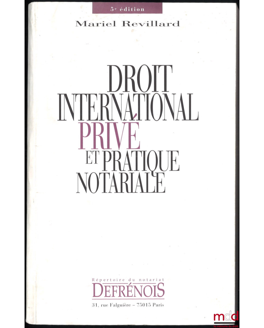 DROIT INTERNATIONAL PRIVÉ ET PRATIQUE NOTARIALE, 5e éd., Préface de Paul Lagarde