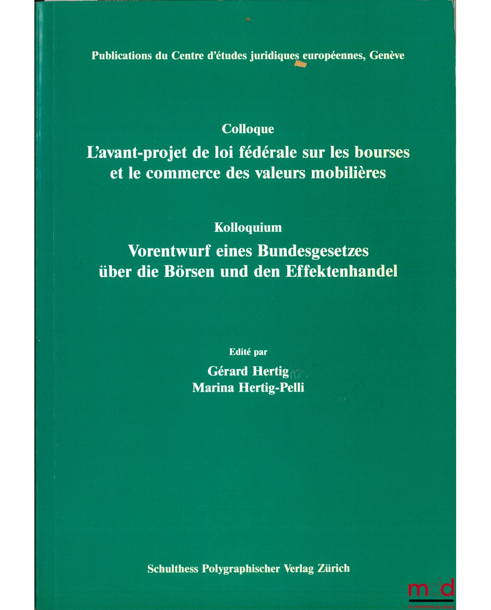 L’AVANT-PROJET DE LOI FÉDÉRALE SUR LES BOURSES ET LE COMMERCE DES VALEURS MOBILIÈRES, édités par Gérard Hertig et Marina Hertig-Pelli, Publ. du Centre d’études juridiques européennes Genève