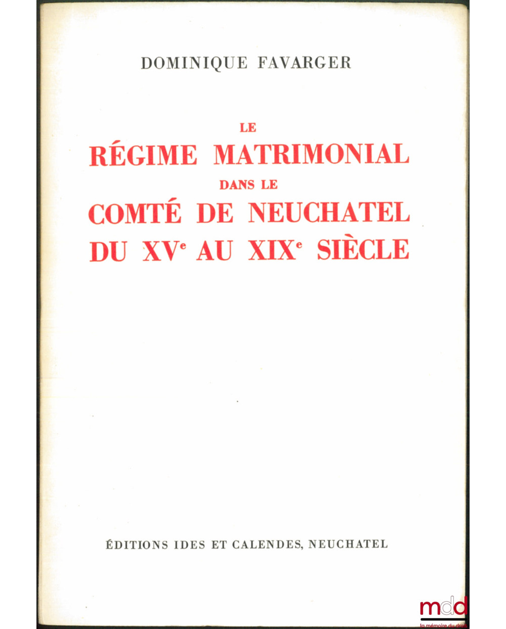 LE RÉGIME MATRIMONIAL DANS LE COMTÉ DE NEUCHÂTEL DU XVe AU XIXe SIÈCLE, Universitas Neocomensis Helvetiorum