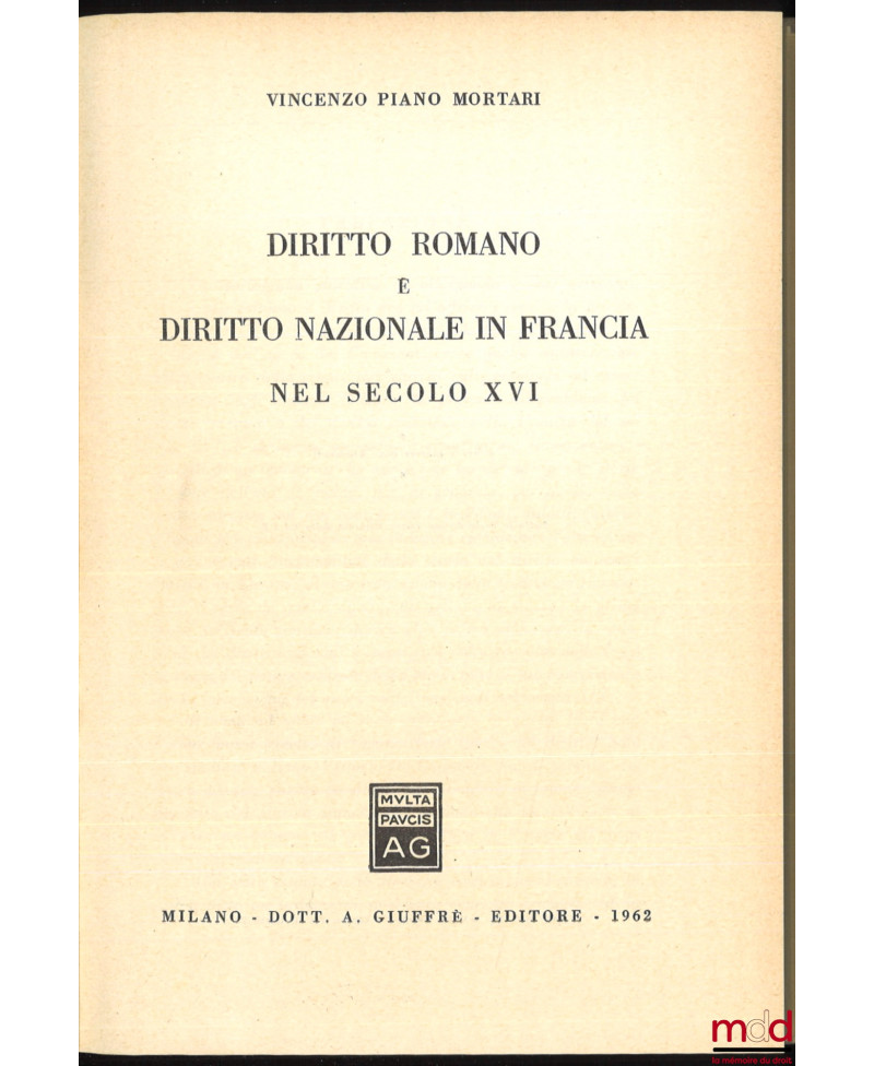 DIRITTO ROMANO E DIRITTO NAZIONALE IN FRANCIA NEL SECOLO XVI