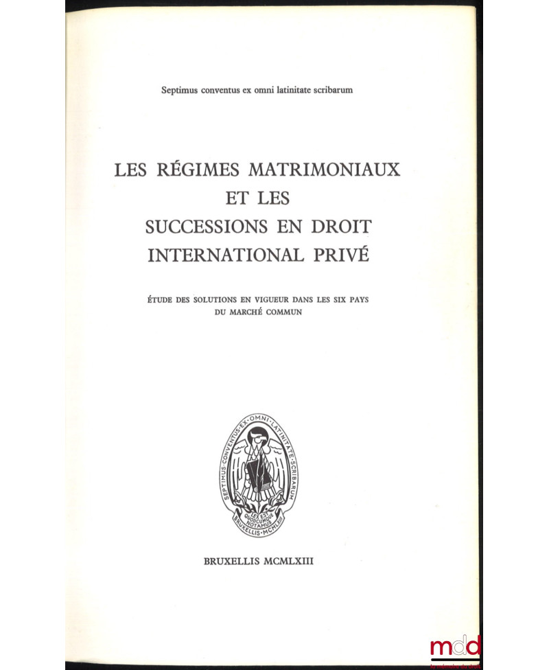 LES RÉGIMES MATRIMONIAUX ET LES SUCCESSIONS EN DROIT INTERNATIONAL PRIVÉ, Étude des solutions en vigueur dans les six pays du marché commun, Septimus conventus ex omni latinitate scribarum, édité à l’occasion du VIIe Congrès de l’Union International du Notariat Latin réuni à Bruxelles du 7 au 17 septembre 1963, Rapporteur : François Rigaux