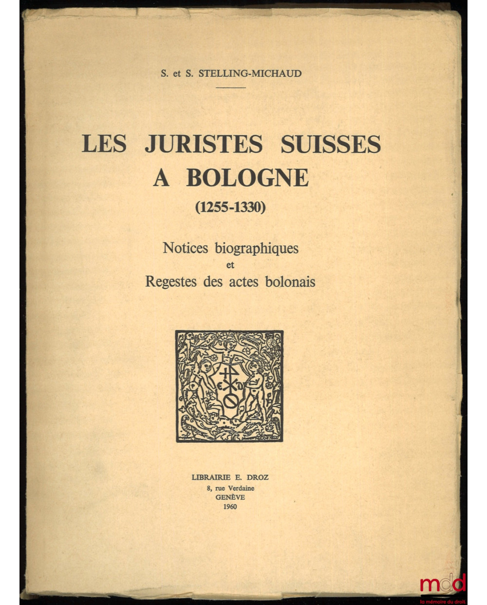 « Dans cet ouvrage, fruit de longues recherches menées dès avant 1939 à l’Archivio di Stato de Bologne, M. S. Stelling-Michaud, professeur d’histoire moderne à l’Université de Genève, envisage une série de problèmes présentant un vif intérêt pour l’historien des institutions. Faute de pouvoir analyser ici dans le détail le contenu très riche de ce livre, nous nous contenterons d’insister sur quelques points importants.L’auteur se propose de déterminer le rôle joué aux XIVe et XVIe siècles par l’Université de Bologne dans la pénétration des droits savants en Suisse. Dans ce but il a patiemment recherché dans la volumineuse série des Registres de la Commune de Bologne la L’ouvrage de M. Stelling-Michaud contient ainsi une quantité de renseignements utiles sur les juristes suisses qui prirent leurs grades dans la cité romagnole. (…) Mais M. Stelling-Michaud ne se contente pas d’apporter une contribution originale et précieuse à l’histoire sociale et culturelle de son pays, il a en effet le mérite d’envisager des problèmes plus vastes et d’intérêt plus général. C’est tout d’abord la question si controversée des origines de l’Université de Bologne qui fait l’objet d’une utile mise au point (p. 13-25). L’auteur souligne à cet égard le caractère original et unique en Europe du Studium bolonais, “création laïque et privée, évoluant vers une forme démocratique et égalitaire, par opposition aux Studia generalia de Paris et d’Oxford, créés sous l’égide de l’Église et dans un esprit hiérarchique”. M. Stelling-Michaud termine son beau livre en insistant sur l’idée que “le droit romain a influencé profondément au Moyen Âge le langage juridique, les conceptions et les habitudes locales de la Suisse actuelle : il a été un ferment puissant de civilisation en dépit de l’opposition populaire qui ne fut en somme rien d’autre, – comme l’a justement remarqué E. Meynial, qu’une réaction à la fois de l’ignorance et du tempérament national” ». (LaurentChevailler. Sven Stelling-Michaud L’université de Bologne et la pénétration des droits romain et canonique en Suisse aux XIIIe et XIVe siècles. In Revue d’histoire de l’Église de France, n° 42/1956, p. 253-257).