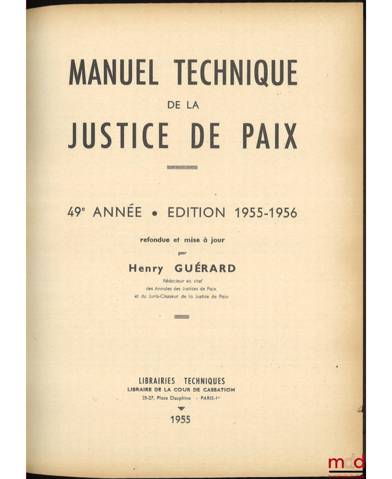 MANUEL TECHNIQUE DE LA JUSTICE DE PAIX, 49e année, éd. 1955-1956 refondue et mise à jour