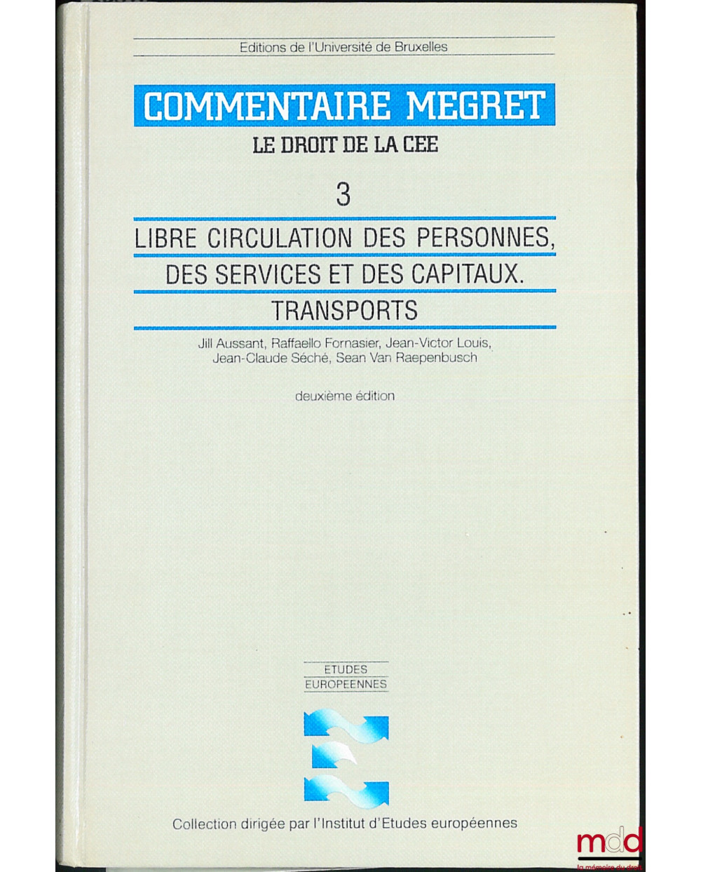 LIBRE CIRCULATION DES PERSONNES, DES SERVICES ET DES CAPITAUX. TRANSPORTS, 2ème éd., coll. Commentaire MEGRET, Le Droit de la CEE, t. 3, Inst. d’études européennes