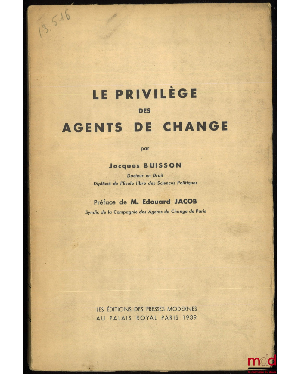 LE PRIVILÈGE DES AGENTS DE CHANGE, Préface de Édouard Jacob