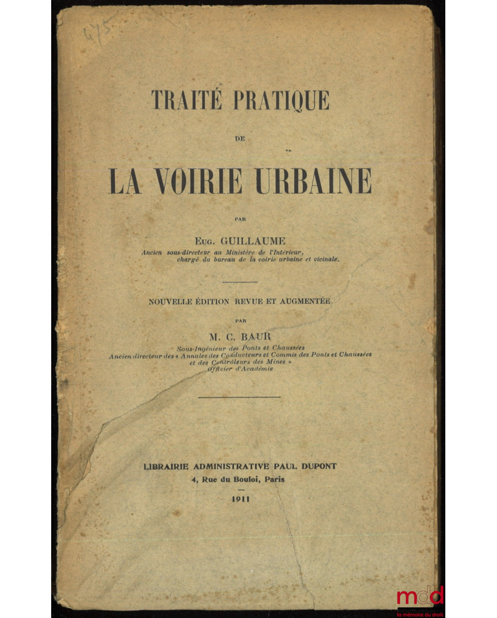 TRAITÉ PRATIQUE DE LA VOIRIE URBAINE, nouvelle éd. revue et augmentée par M.C. BAUR