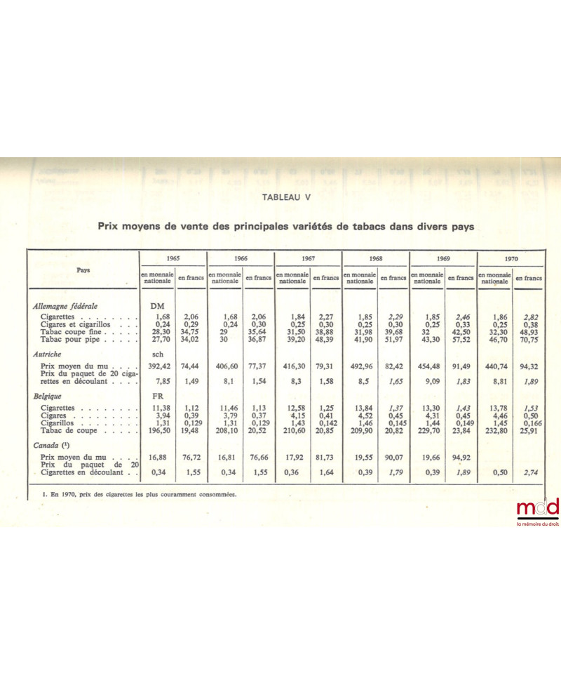 LE TABAC EN FRANCE ET DANS LE MONDE, coll. L’Administration nouvelle