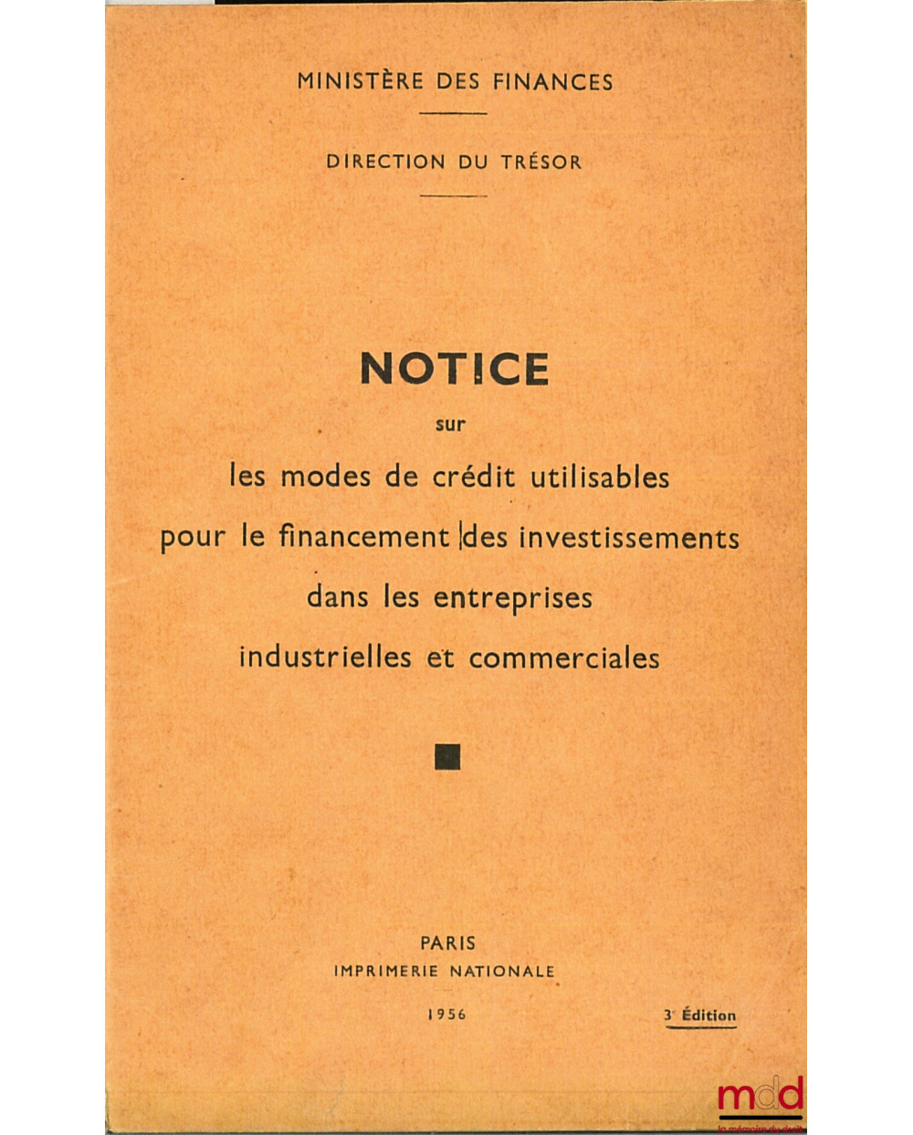 NOTICE SUR LES MODES DE CRÉDIT UTILISABLES POUR LE FINANCEMENT DES INVESTISSEMENTS DANS LES ENTREPRISES INDUSTRIELLES ET COMMERCIALES