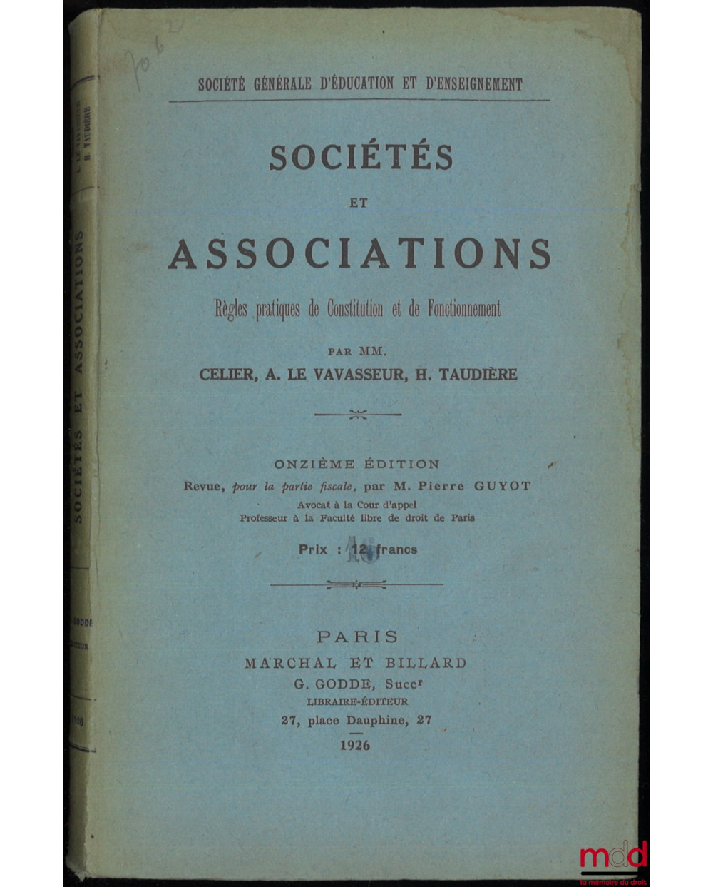 SOCIÉTÉS ET ASSOCIATIONS, RÈGLES PRATIQUES DE CONSTITUTION ET DE FONCTIONNEMENT, 11e éd., Revue, pour la partie fiscale, par M. Guyot
