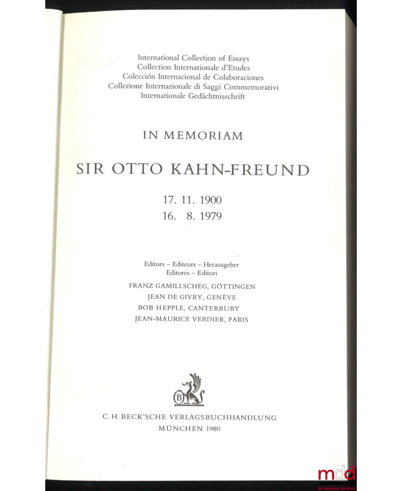 IN MEMORIAM SIR OTTO KAHN-FREUND, 17. 11. 1900 - 16. 8. 1979, International Collection of Essays