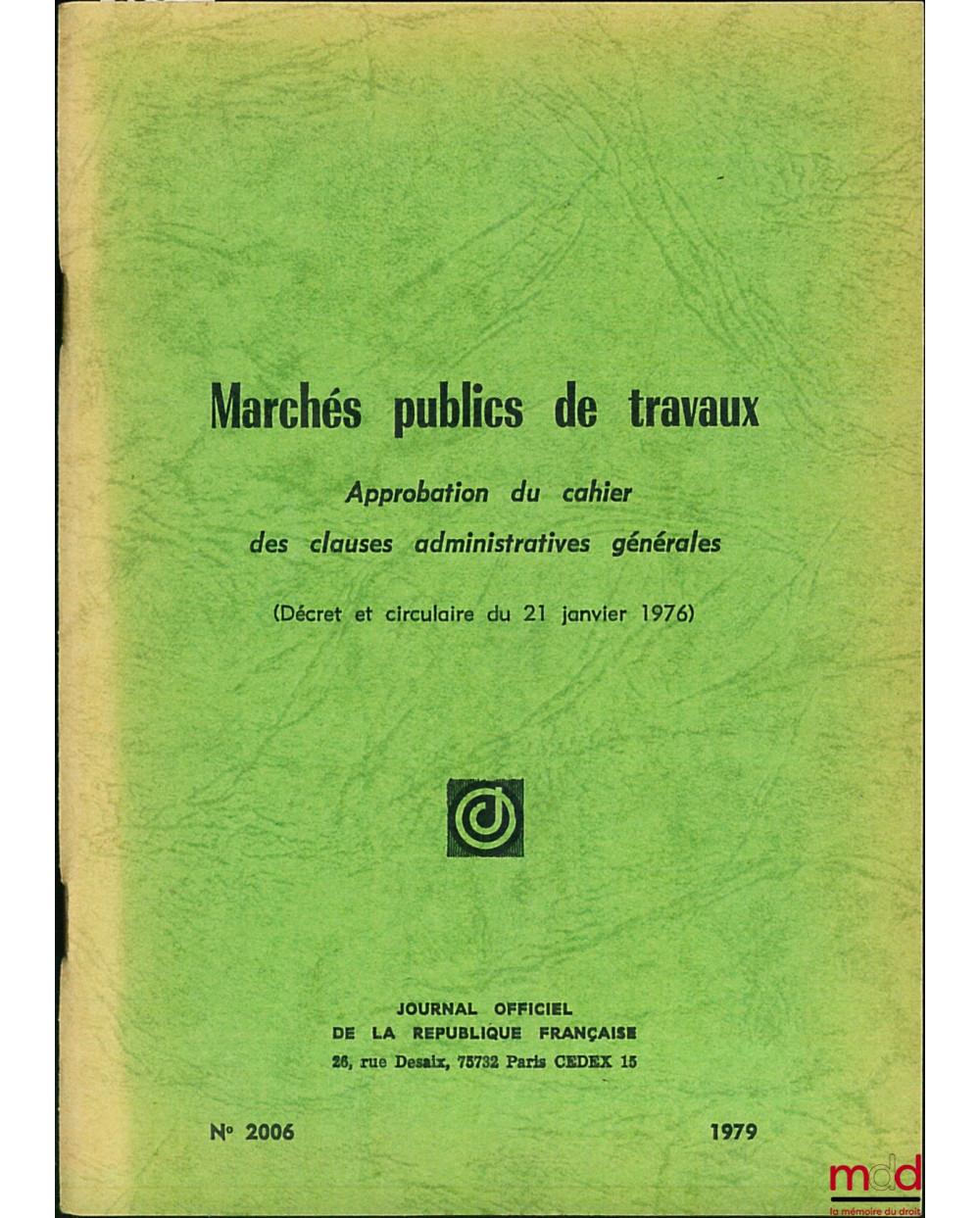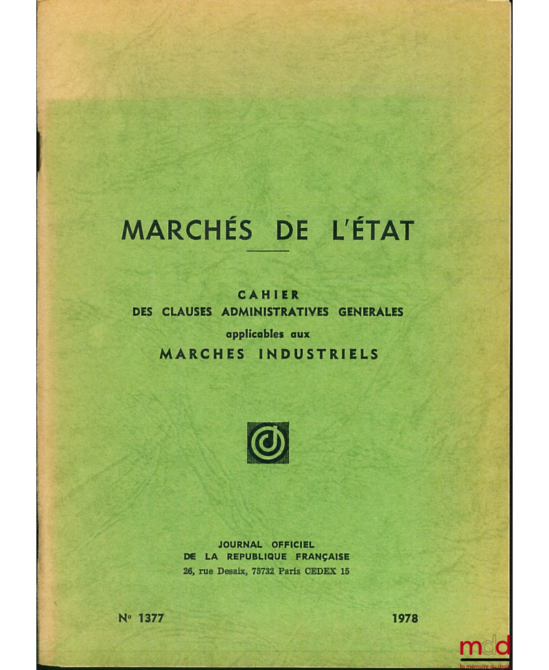 CODE DES MARCHÉS PUBLICS 1977, MARCHÉS DE L’ÉTAT, Cahier des clauses administratives générales applicables aux marchés industriels 1978 et MARCHÉS PUBLICS DE TRAVAUX, Approbation du cahier des clauses administratives générales 1979