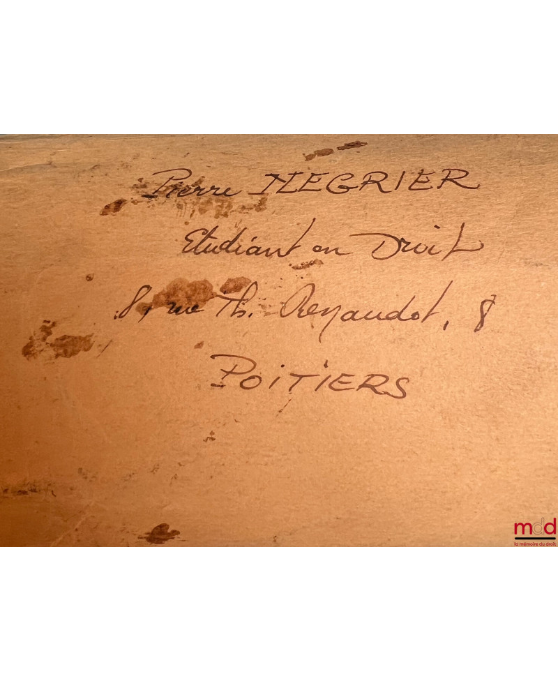 - 150 x 94 cm, Technique mixte sur papier, couleur encore vive, signature « π ζ / 1-I-40 », mention au verso « Pierre NEGRIER, Étudiant en Droit, 8 rue Th. Renaudot 8, POITIERS », (déchirures, pliures, salissures, scotch, manques), assez bon état malgré les défauts précités.