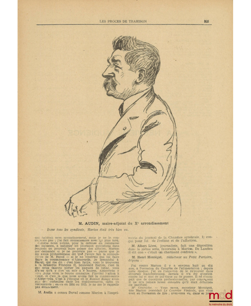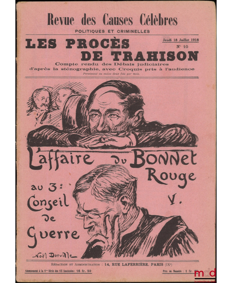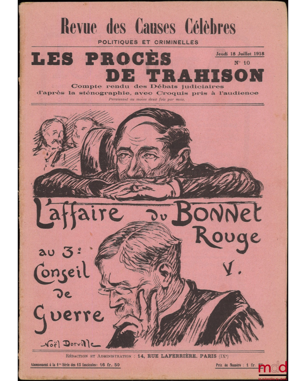 LES PROCÈS DE TRAHISON, L’AFFAIRE DU BONNET ROUGE AU 3e CONSEIL DE GUERRE, Compte-rendu des Débats judiciaires d’après la sténographie, avec Croquis pris à l’audience, Revue des Causes célèbres politiques et criminelles, Jeudi 18 juillet 1918, n° 10