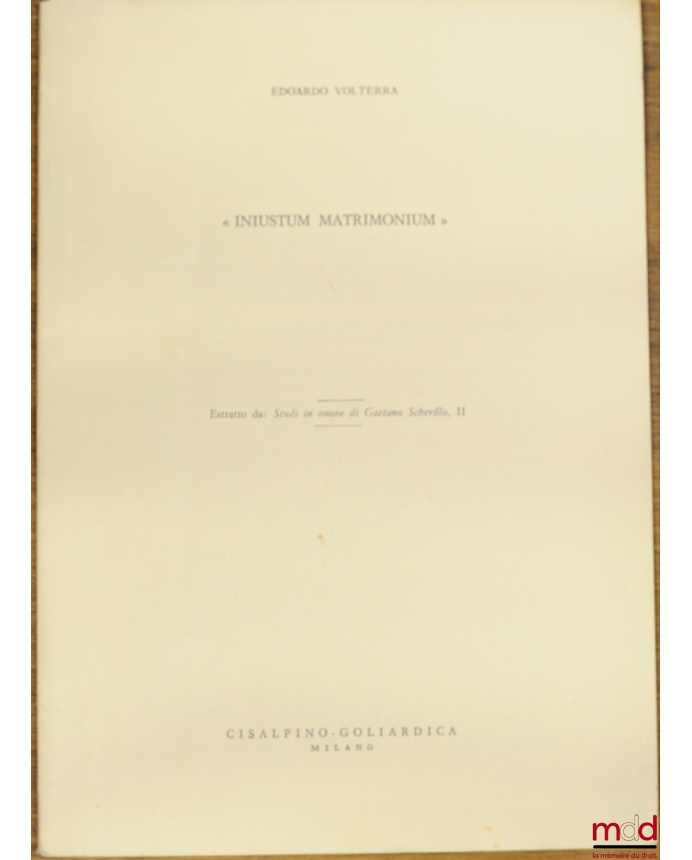 INIUSTUM MATRIMONIUM, extrait des mélanges Gaetano Scherillo, t. II