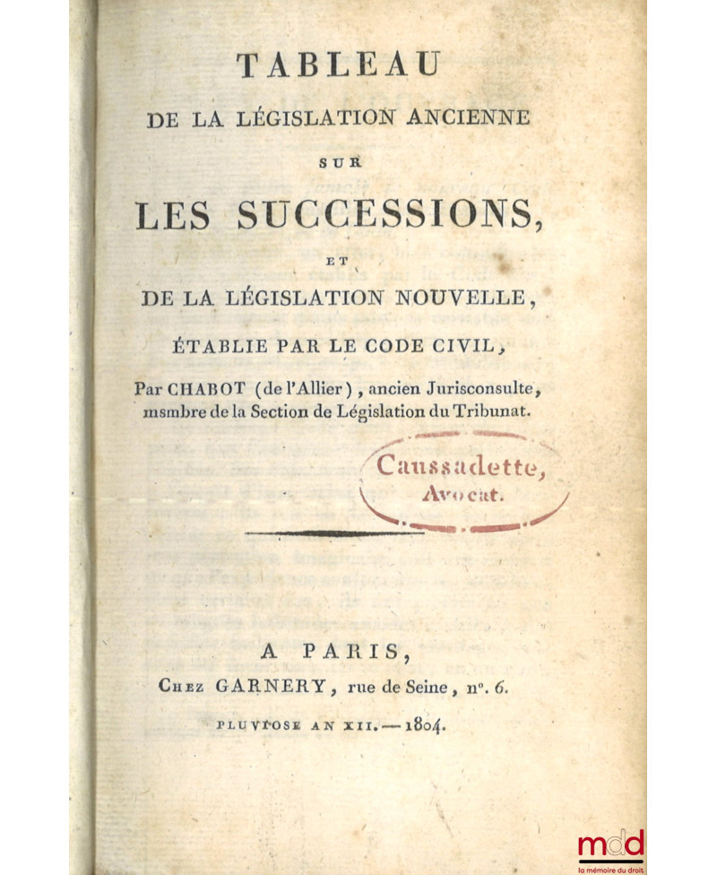 TABLEAU DE LA LÉGISLATION ANCIENNE SUR LES SUCCESSIONS, ET DE LA LÉGISLATION NOUVELLE, ÉTABLIE PAR LE CODE CIVIL