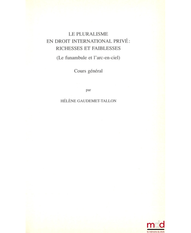 LE PLURALISME EN DROIT INTERNATIONAL PRIVÉ : RICHESSES ET FAIBLESSES, (Le funambule et l’arc-en-ciel), Cours général