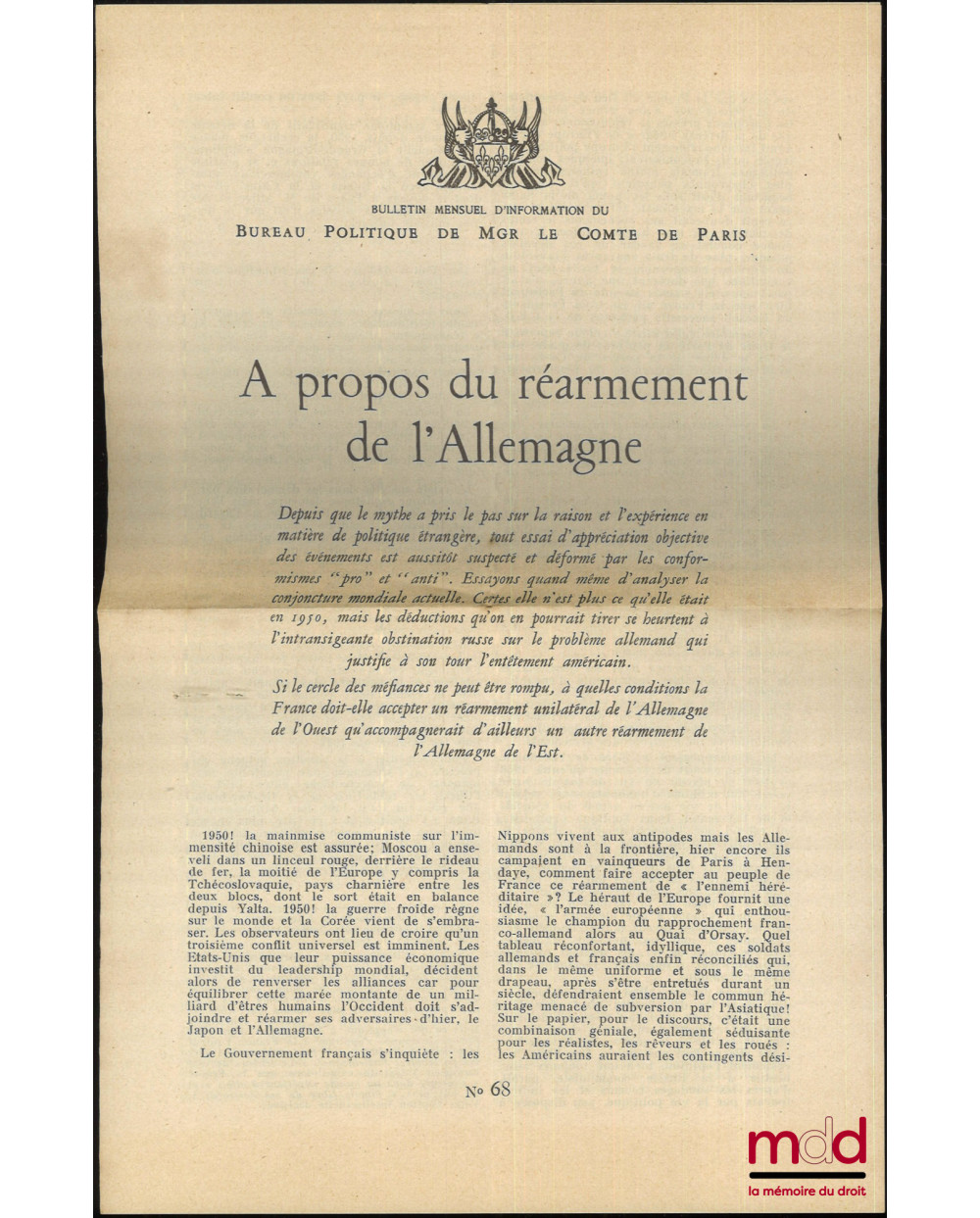À PROPOS DU RÉARMEMENT DE L’ALLEMAGNE, Bulletin mensuel d’information du Bureau politique de Mgr Le Comte de Paris, n° 68