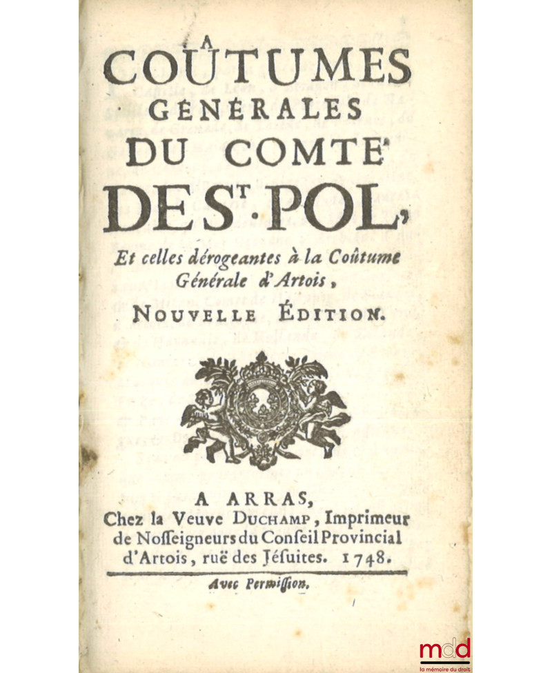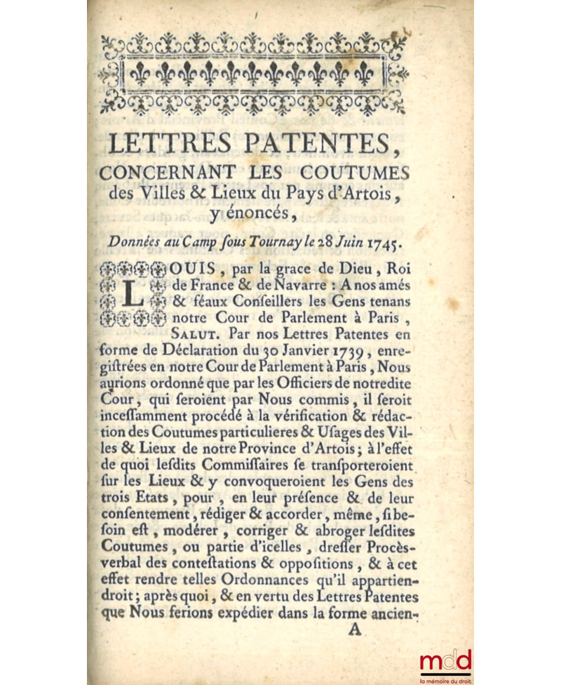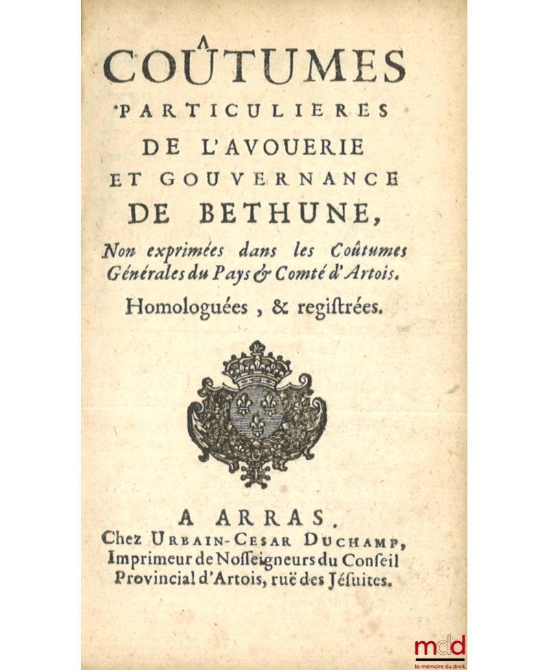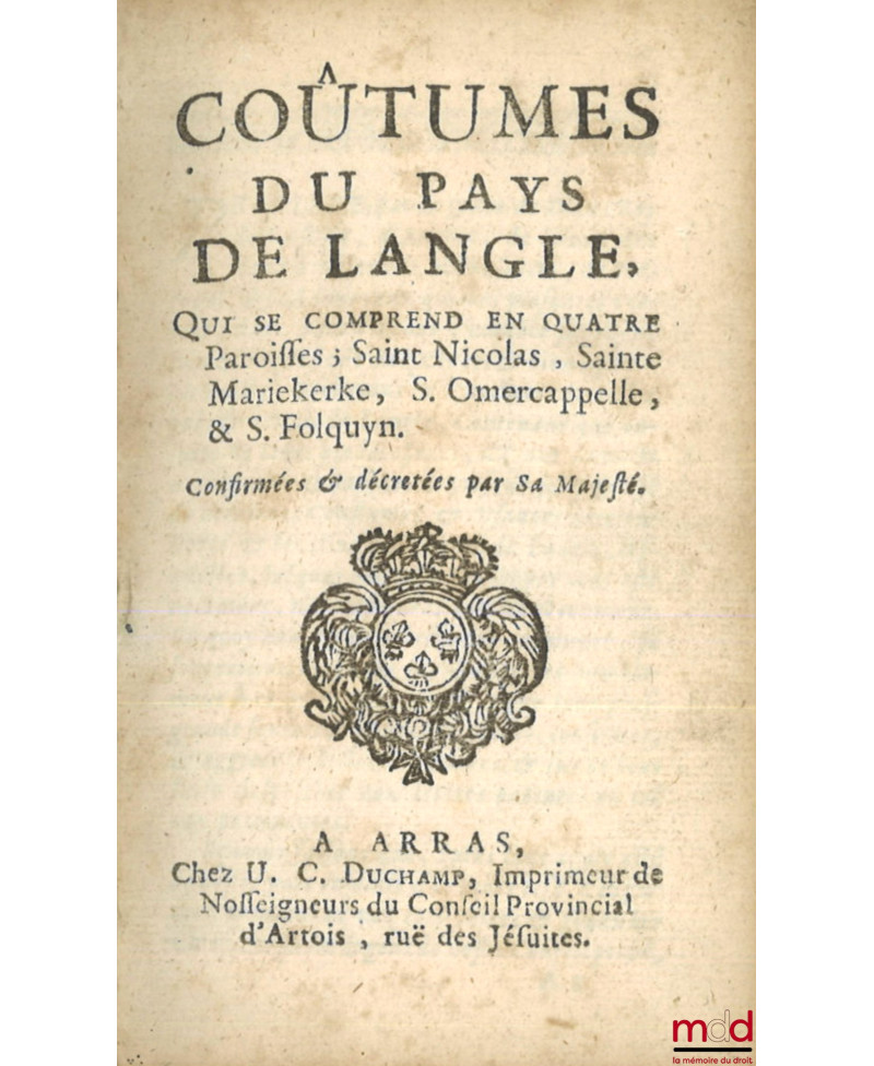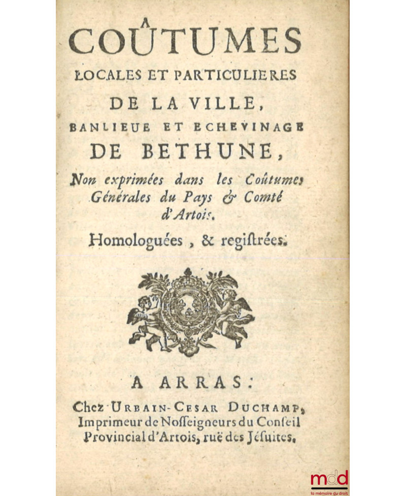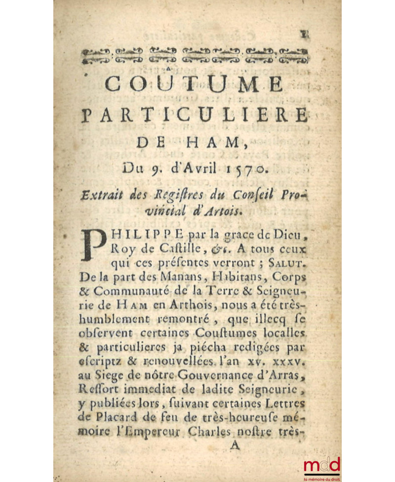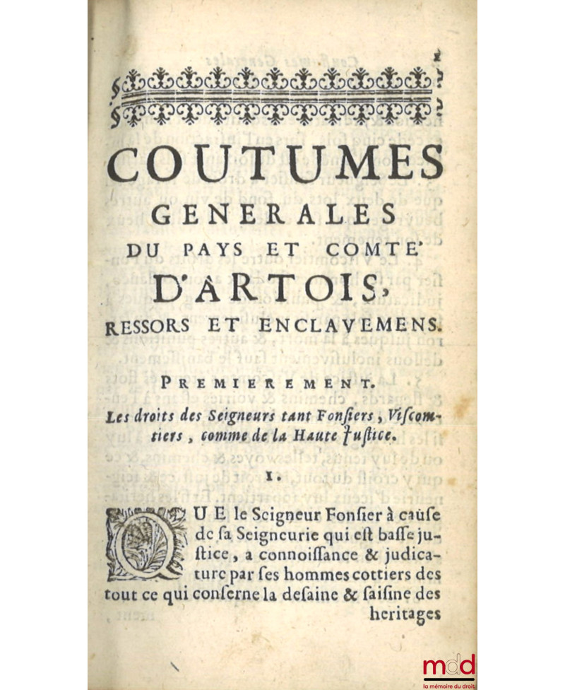 COUTUMES GÉNÉRALES DU PAYS ET COMTÉ D’ARTOIS, Ressors et enclavemens ; COUTUME PARTICULIÈRE DE HAM, Du 9 d’avril 1570. Extrait des registres du conseil provincial d’Artois. ;COUTUMES DU PAYS DE LANGLE, Qui se comprend en quatre paroisses, Saint Nicolas, Sainte Mariekerke, S. Omercappelle, & S. Folquyn, Confirmées et décrétées par sa Majesté ;COUTUMES LOCALES ET PARTICULIÈRES DE LA VILLE, BANLIEUE ET ÉCHEVINAGE DE BETHUNE, Non exprimées dans les Coutumes générales du Pays & Comté d’Artois, Homologuées, & registrées ;COUTUMES PARTICULIÈRES DE L’AVOUERIE ET GOUVERNANCE DE BETHUNE, Non exprimées dans les Coutumes Générales du Pays & Comté d’Artois. Homologuées et registrées ;COUTUMES DE LA CHASTELLENIE ET BAILLIAGE DE HESDIN, Dérogeantes à la coutume générale du Païs & Comté d’Artois ;COUTUMES GÉNÉRALES DU COMTÉ DEST.POL, Et celles dérogeantes à la Coutume Générale d’Artois, Nouvelle éd. ;LETTRES PATENTES CONCERNANT LES COUTUMES DES VILLES ET LIEUX DU PAYS D’ARTOIS Y ÉNONCÉS.