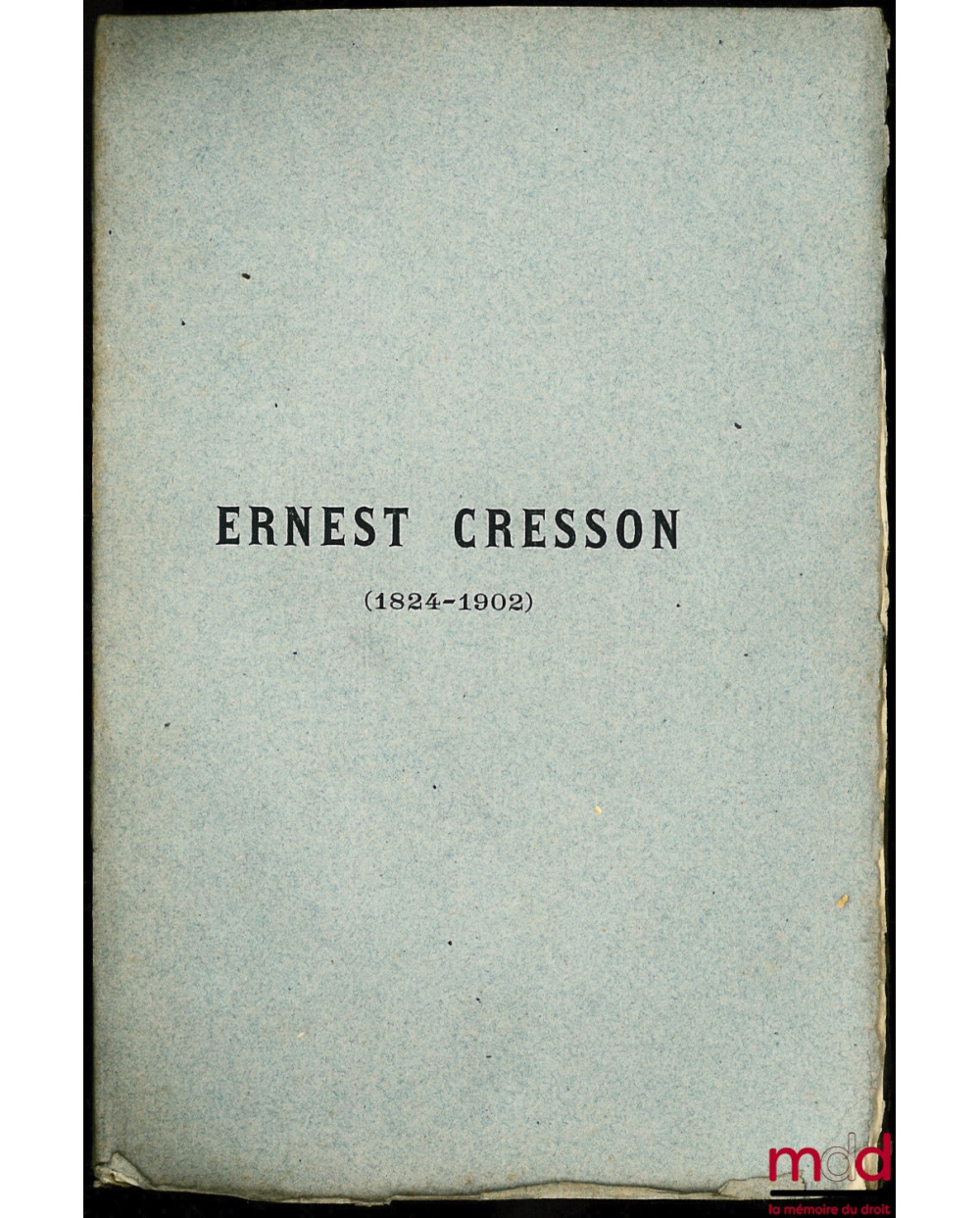 ERNEST CRESSON (1824-1902), Discours prononcé par M. Danet, bâtonnier de l’Ordre au cimetière Montmartre, Discours prononcé par M. Bourdillon, bâtonnier de l’Ordre, à la séance de rentrée de la conférence des avocats, Notice lue par M. Léon Devin, ancien bâtonnier de l’Ordr, à l’Assemblé Générale de l’association des anciens secrétaires de la conférence des avocats, le 21 décembre 1903, Discours prononcé par M. Baudouin, procureur général à la cours de cassation, à l’assemblé générale de la société de législation comparée