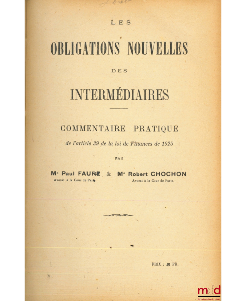 LES OBLIGATIONS NOUVELLES DES INTERMÉDIAIRES, Commentaire pratique de l’article 39 de la loi de Finances de 1925