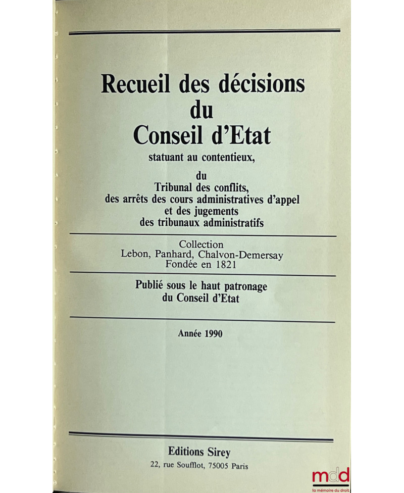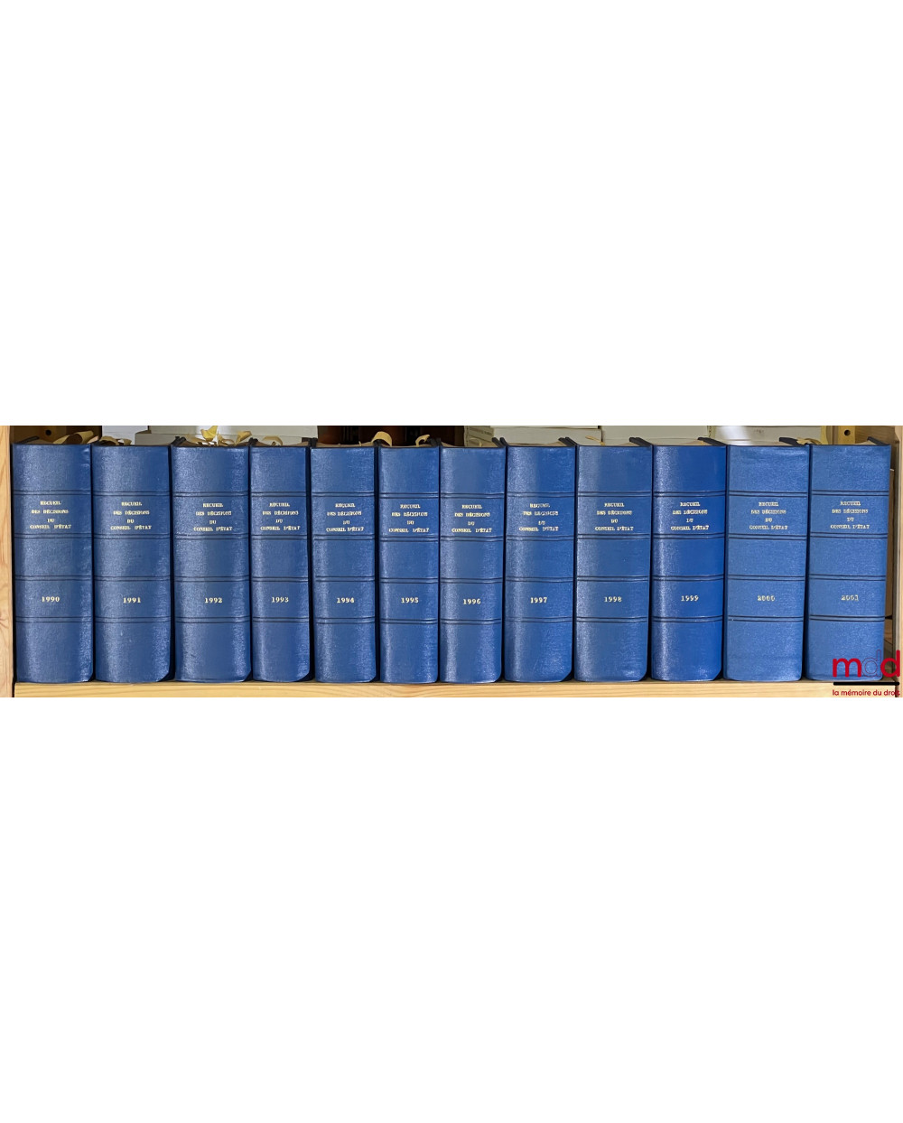 RECUEIL DES DÉCISIONS DU CONSEIL D’ÉTAT STATUANT AU CONTENTIEUX DU TRIBUNAL DES CONFLITS ET DES JUGEMENTS DES TRIBUNAUX ADMINISTRATIFS, coll. Lebon, Panhard, Chalvon-Demersay fondée en 1821, de 1990 à 2014 [complet]