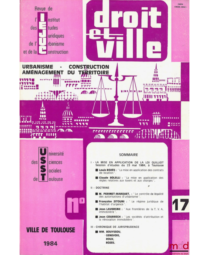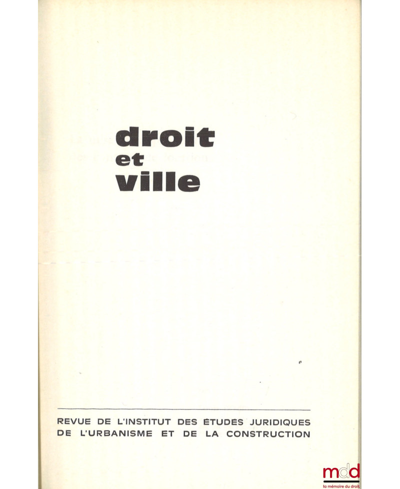DROIT ET VILLE, Revue de l’Institut des Études Juridiques de l’Urbanisme et de la Construction fondée par Michel Despax ; Urbanisme, Construction, Aménagement du Territoire, n° 9 et 10 (1980), du n° 13 (1982) au n° 21 (1986), du n° 44 (1997) au n° 64 (2007), du n° 66 (2008) au n° 68 (2009), du n° 70 (2010) au n° 77 (2013)