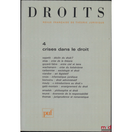 CRISES DANS LE DROIT, Droits, Revue Française de Théorie Juridique, n° 4