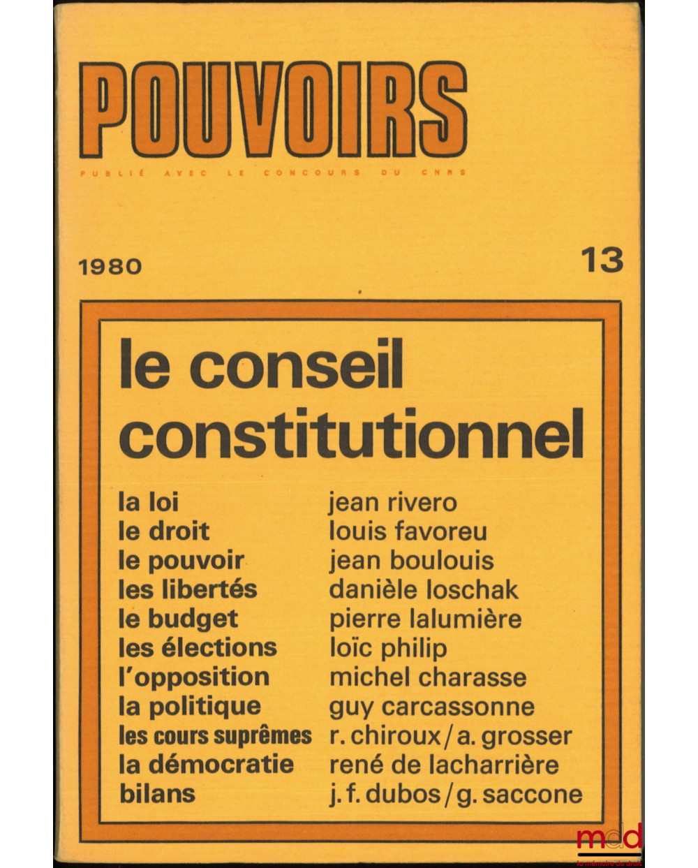 LE CONSEIL CONSTITUTIONNEL, Pouvoirs n° 13, Revue française d’études constitutionnelles et politiques