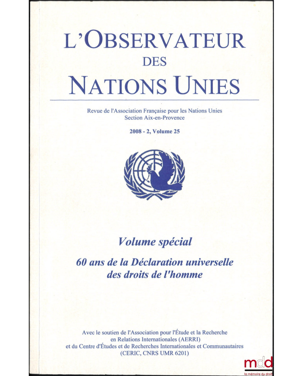 60 ANS DE LA DÉCLARATION UNIVERSELLE DES DROITS DE L’HOMME, Volume spécial, L’observateur des Nations Unies, 2008 - 2, vol. 25