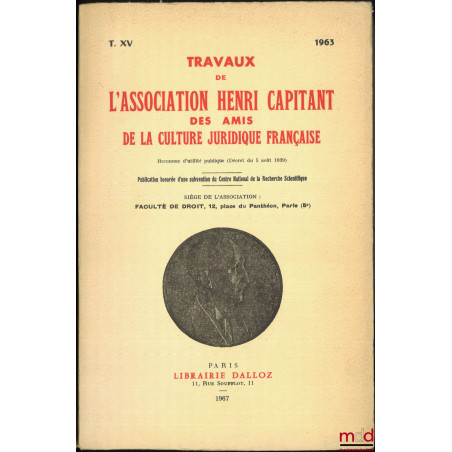 [Travaux de l’Association Henri Capitant]