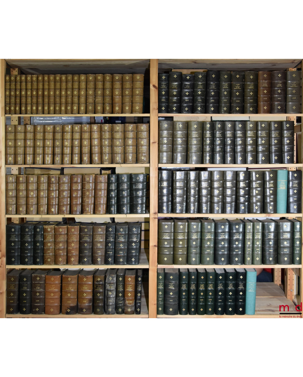 Description : 63 + 5 vol., reliure en demi-basane / demi-chagrin homogène (sauf 3 vol. en pleine toile verte), tit. & tom. dorés sur dos à 4 nerfs, orné de filets à froid soulignant et de fleurons dorés, (marques de bibliothèque, coiffes émoussées dont 2 ou 3 partiellement arrachées, 7 vol. abîmés par un dégâts des eaux avec pages déformées mais toutes parfaitement lisible, des dos insolés, épidermures sur les dos et plats), globalement une collection en bon état sauf sur la période 1935-1949.
