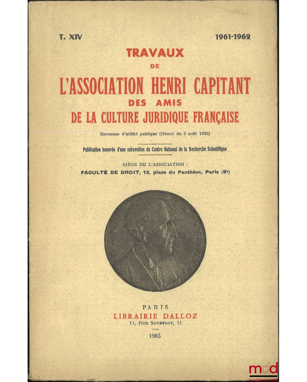 LES NOTIONS D’ÉGALITÉ ET DE DISCRIMINATION EN DROIT INTERNE ET EN DROIT INTERNATIONAL, Journées de Luxembourg du 31 mai - 4 juin 1961.INEXISTENCE, NULLITÉ ET ANNULABILITÉ DES ACTES JURIDIQUES, Journées de Turin du 4-7 juin 1962, t. XIV (1961-1962)