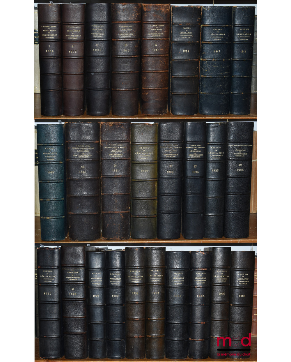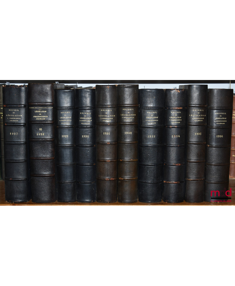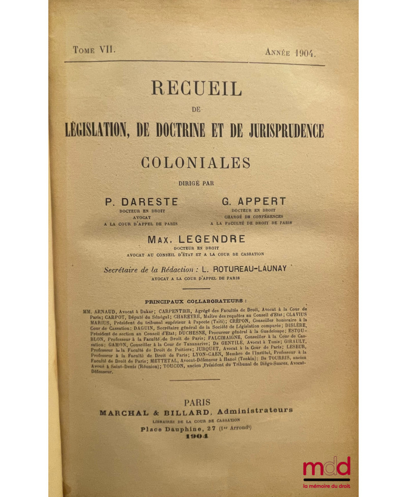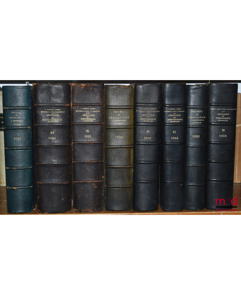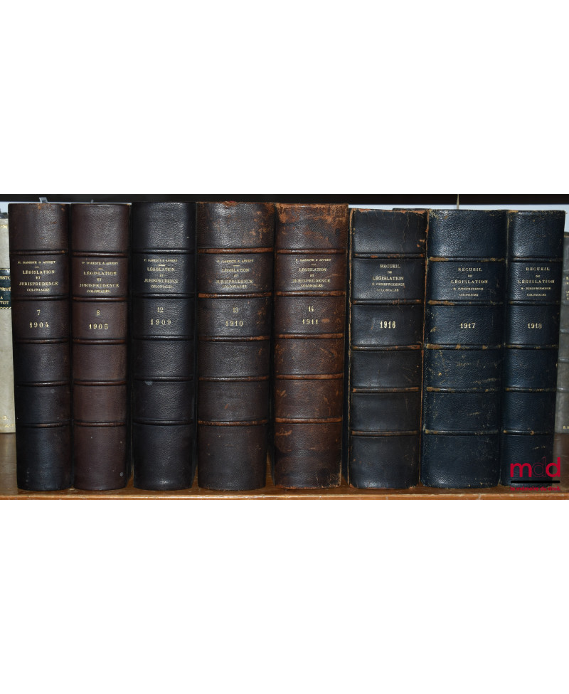 RECUEIL DE LÉGISLATION, DE DOCTRINE ET DE JURISPRUDENCE COLONIALE dirigé par P. Dareste, G. Appert et Max. Legendre, de 1904 (t. VII) à 1936 [mq. 7 années]