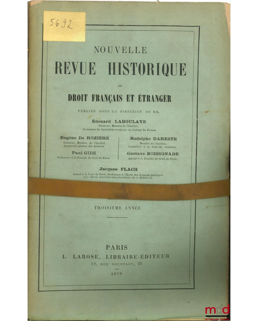 NOUVELLE REVUE HISTORIQUE DE DROIT FRANÇAIS ET ÉTRANGER, troisième année 1879