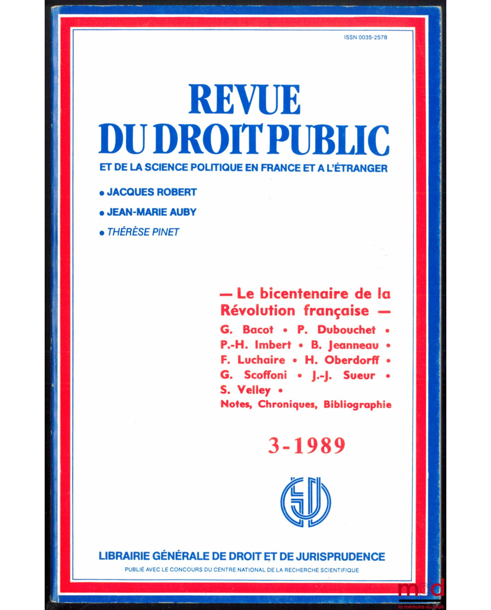LE BICENTENAIRE DE LA RÉVOLUTION, Revue de Droit Public n° 3/1989