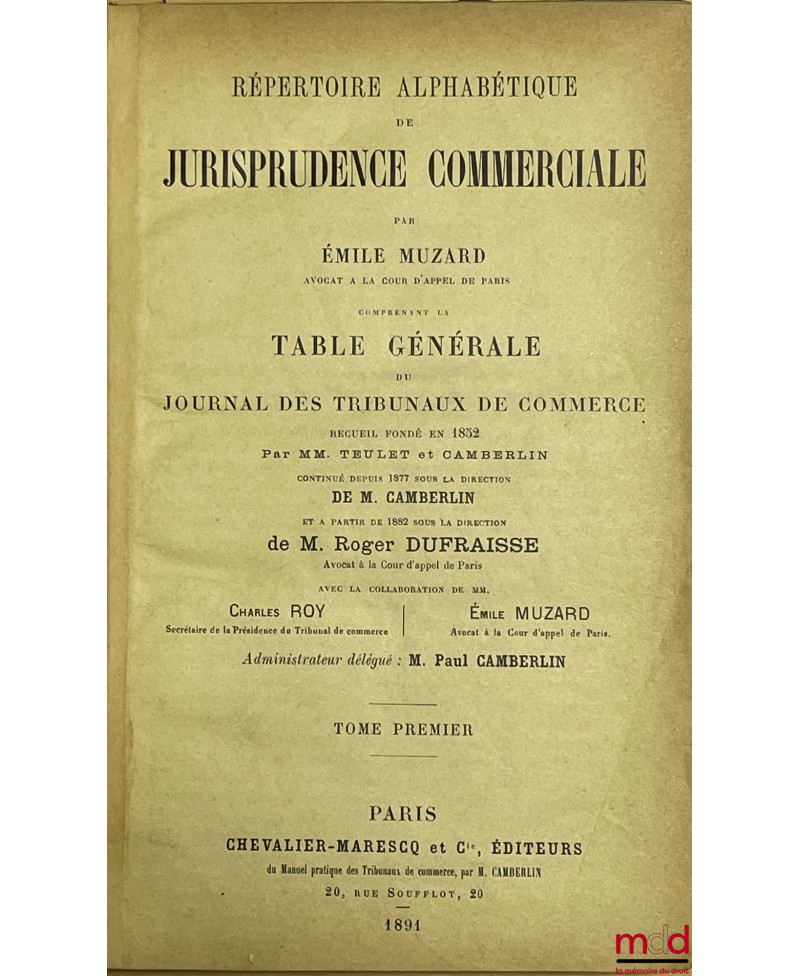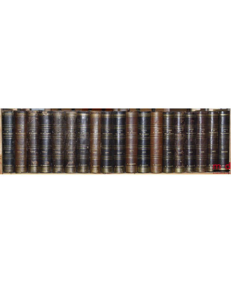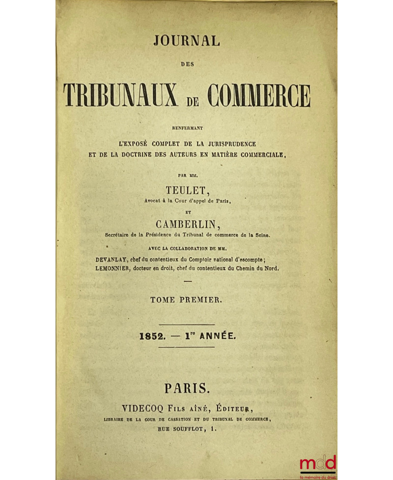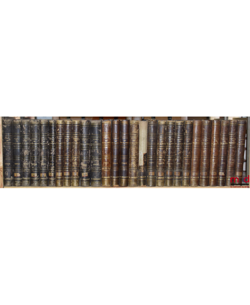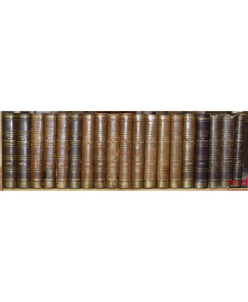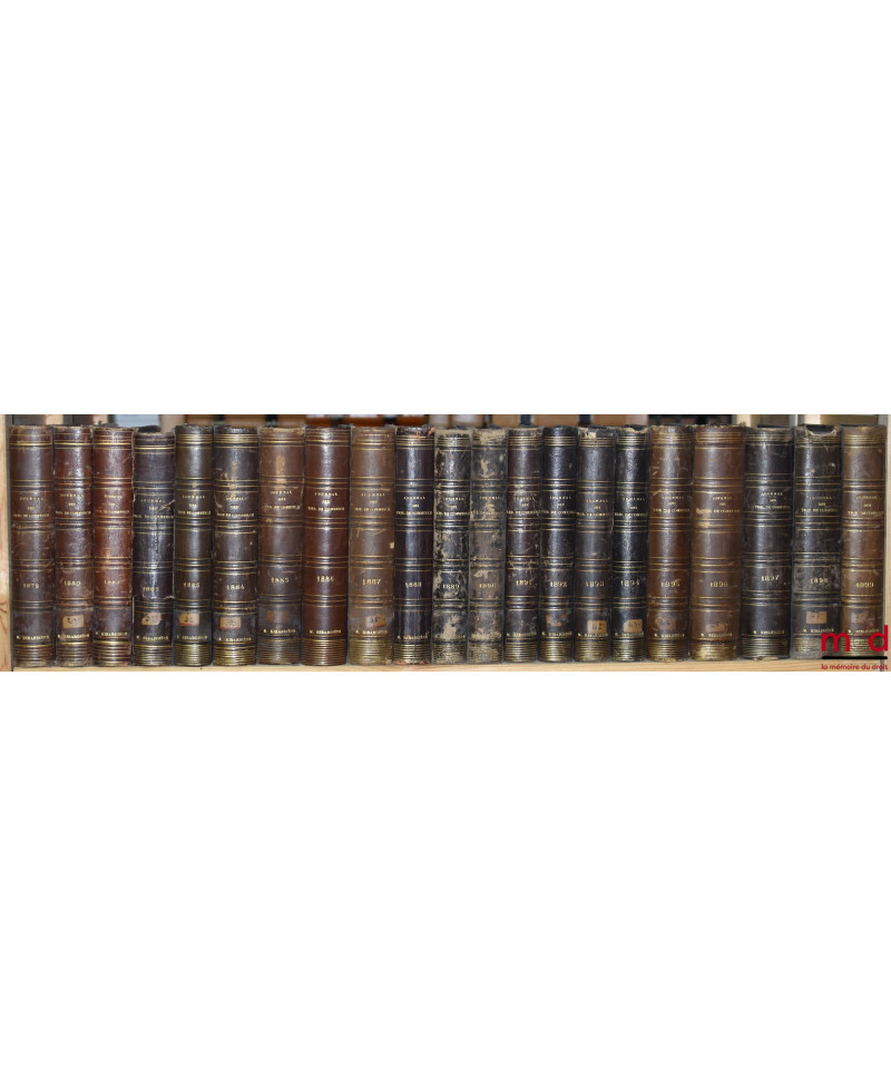 JOURNAL DES TRIBUNAUX DE COMMERCE renfermant l’exposé complet de la jurisprudence et de la doctrine des auteurs en matière commerciale, par MM. Teulet et Camberlin, de 1852 [tête de collection] à 1937 (mq. 1921) ;TABLE GÉNÉRALE DU JOURNAL DES TRIBUNAUX DE COMMERCE, Répertoire alphabétique de jurisprudence commerciale par Émile MUZARD, 1852-1900 (3 vol.)