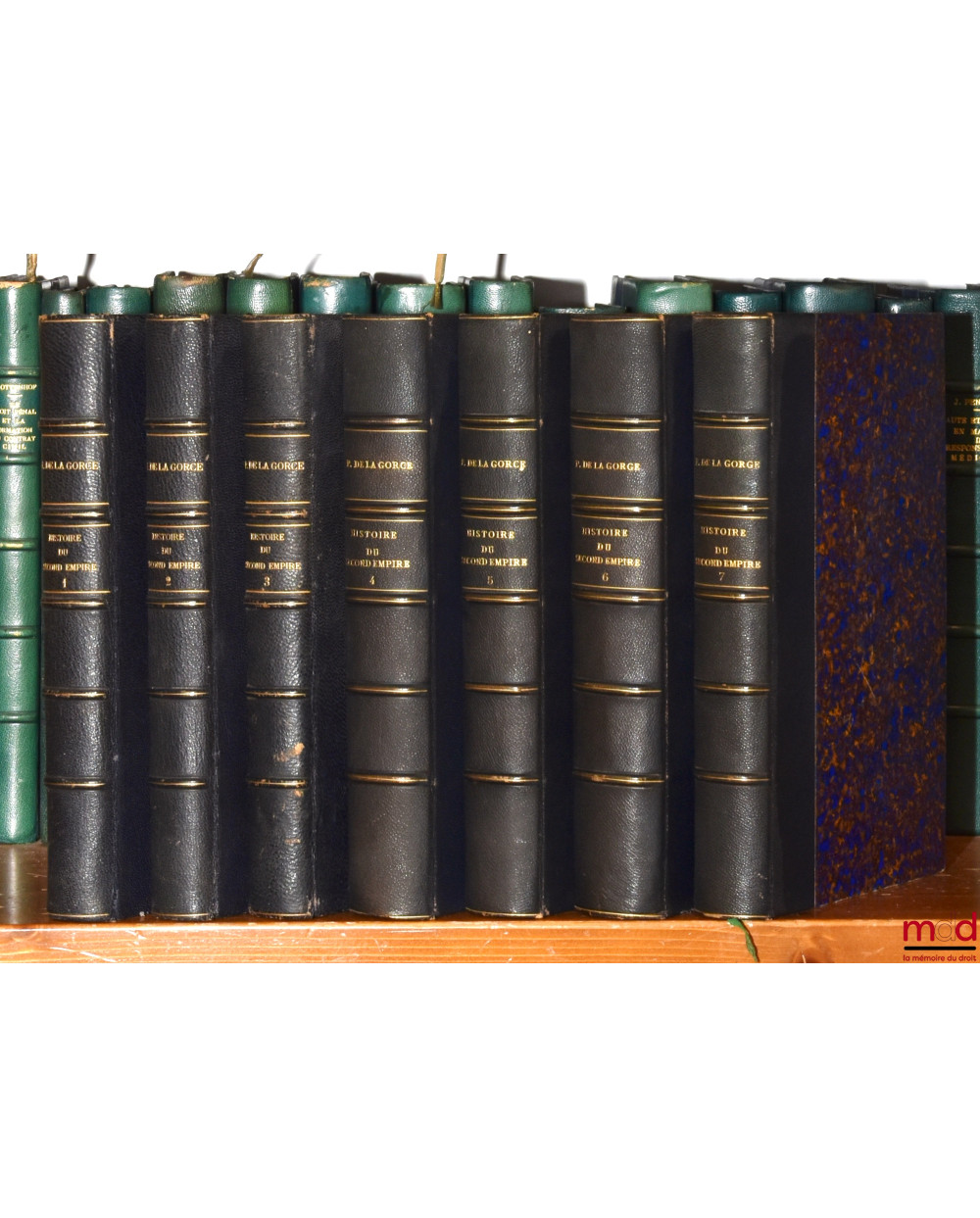 Description : 7 vol. in-8, demi-chagrin noir, tit. et tom. dorés sur dos à cinq nerfs ornés de filets dorés, nb. cartes dépliantes, (très rares épidermures not. sur les t. I et III, coiffes très légt frottées, marques de bibl. à l’int.), int. très frais, très bon état général, VII-493 / 458 / 485 / 642 / 538 / 466 / 444 p.