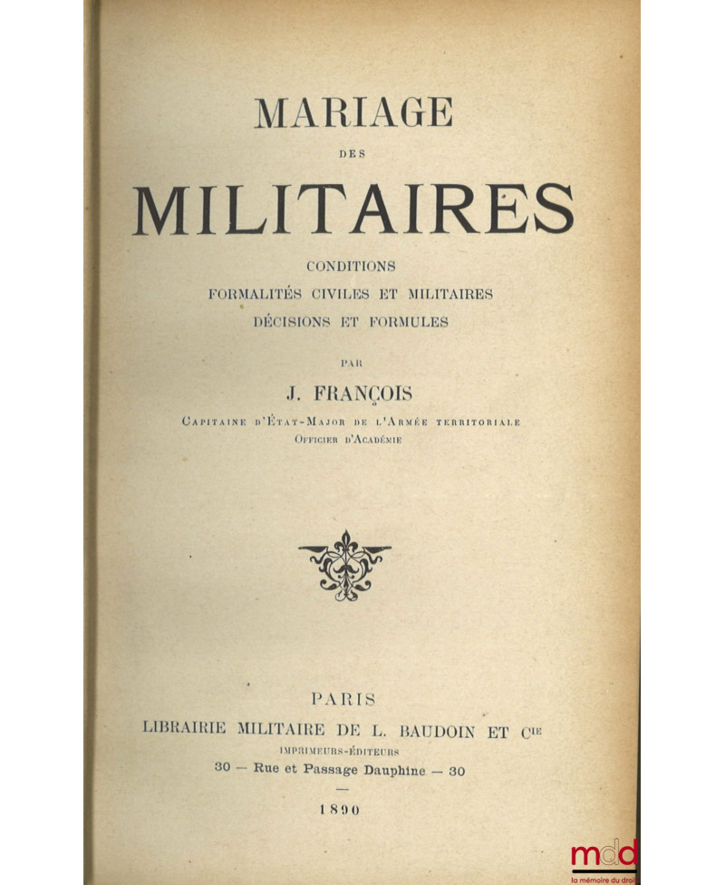 MARIAGE DES MILITAIRES, Conditions, Formalités civiles et militaires, Décisions et formules