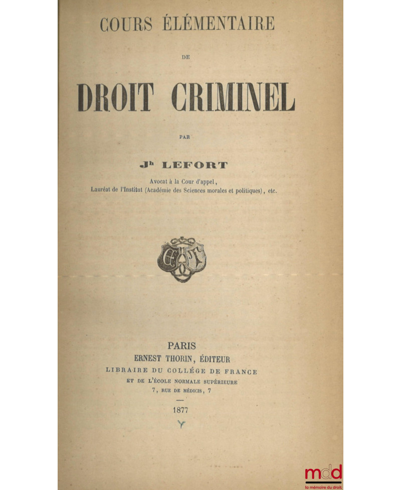 COURS ÉLÉMENTAIRE DE DROIT CRIMINEL
