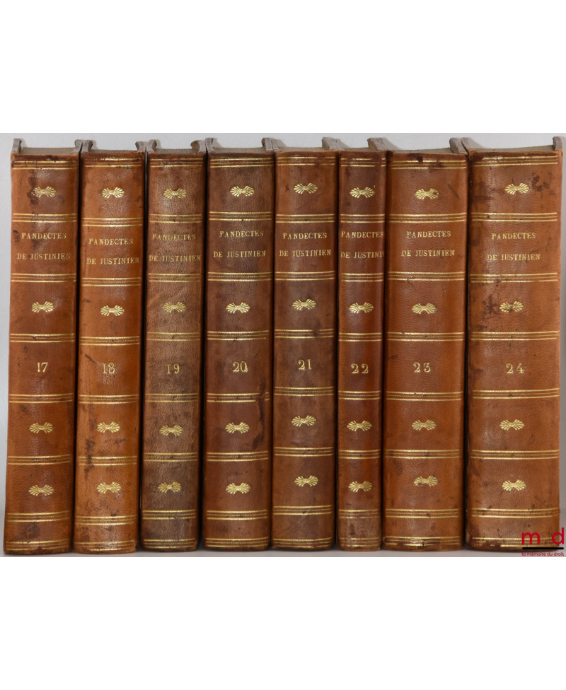 PANDECTES DE JUSTINIEN mises dans un nouvel ordre, avec les lois du code et les novelles qui confirment, expliquent ou abrogent le droit des pandectes, traduites [du latin en français] par [l’abbé Pierre-Antoine-Sulpice] de Bréard-Neuville
