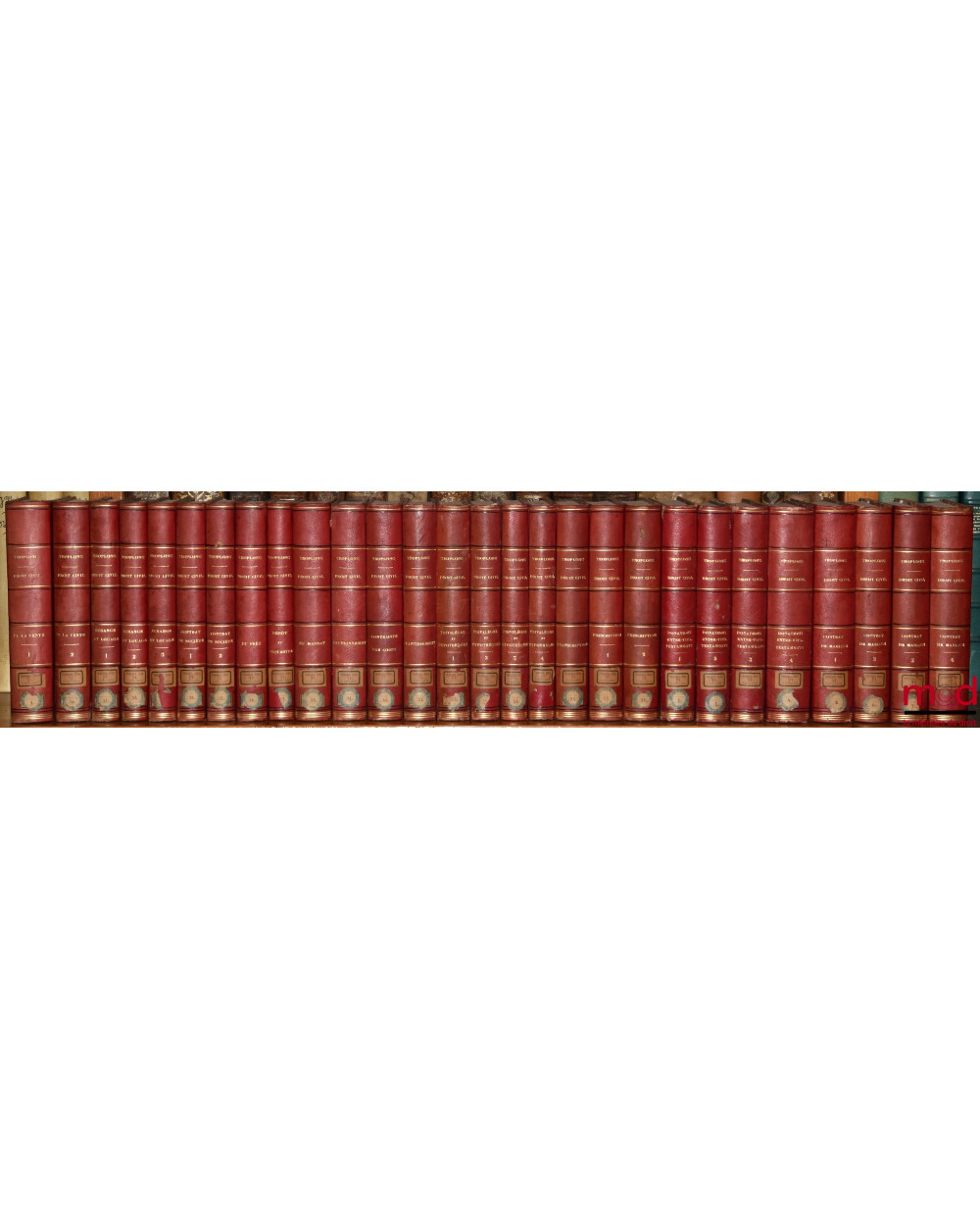 Description : 28 vol. in-8, demi-chargin grenat, tit. et tom. dorées sur dos lisse orné de filets dorés et estampés à froid, tr. mouchetées, (très légères épidermures, qq. impacts sur les plats et tr. de certains vol., des rousseurs et piqûres à l’int., papier parfois acidifié, rares mouillures), XXXIJ-680 / 579 / CXII-401 / 524 / 499 / C-474 / 604 / CLXXV-460 / 508 / XVI-768 / 716 / XLVI-568 / LXXVIIJ-585 / 595 / 526 / 500 / XV-604 / 670.