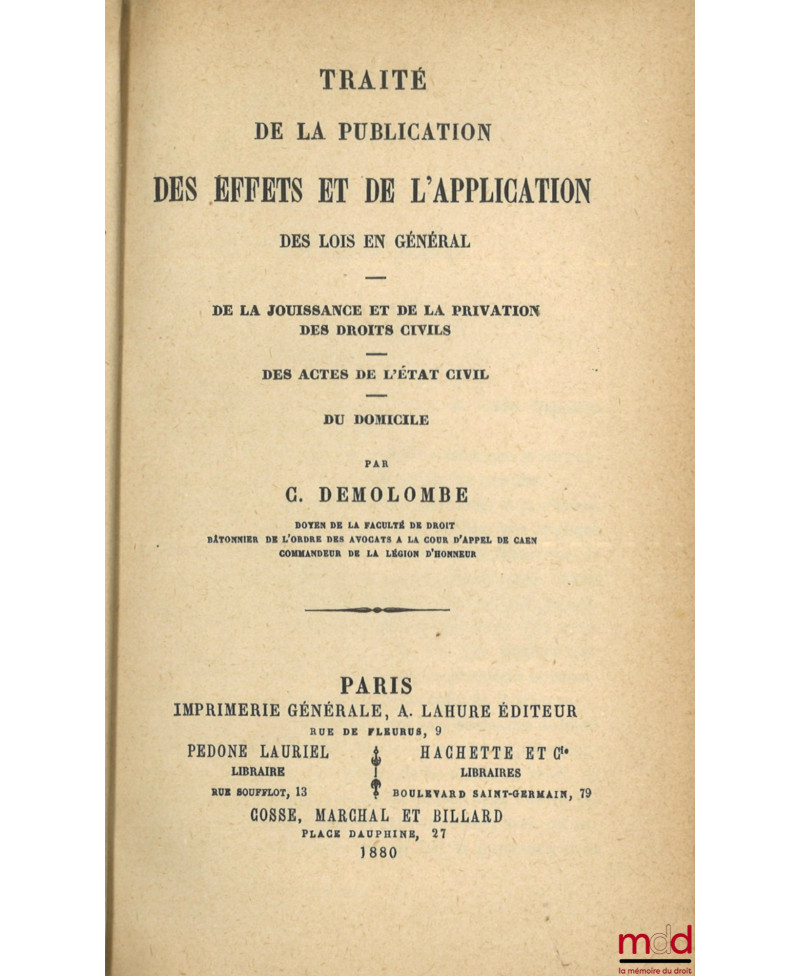 Editeur : Durand & Pedone Lauriel - Hachette et Cie - Cosse Marchal & Billard - A. Marescq Ainé