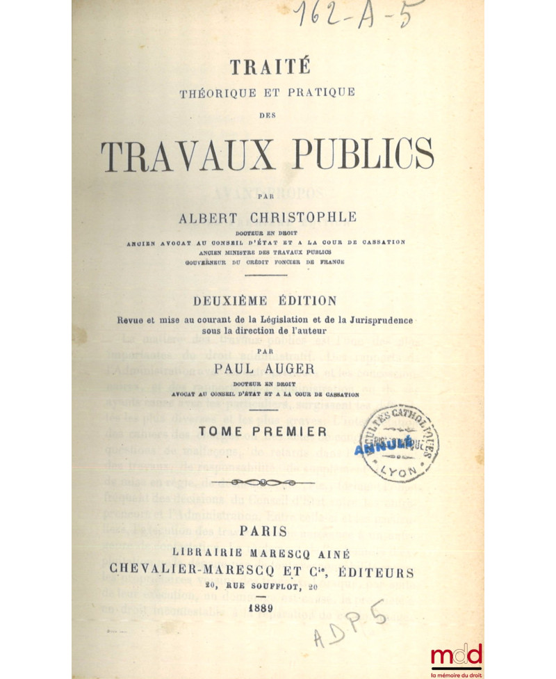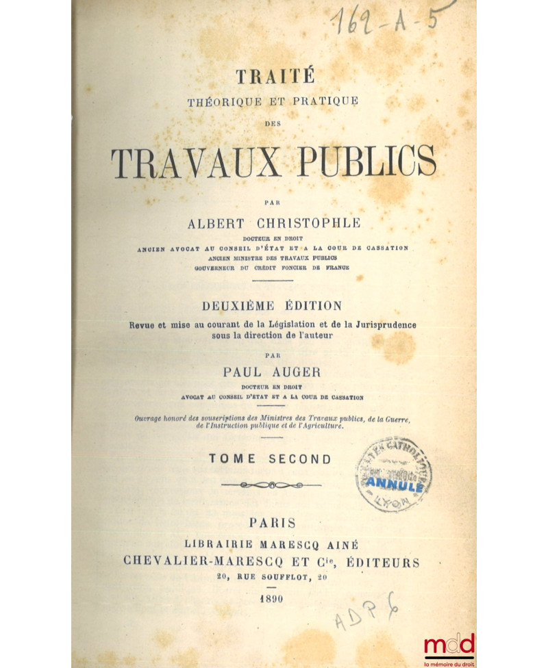 TRAITÉ THÉORIQUE ET PRATIQUE DES TRAVAUX PUBLICS, 2e éd. revue et mise au courant de la Législation et de la Jurisprudence