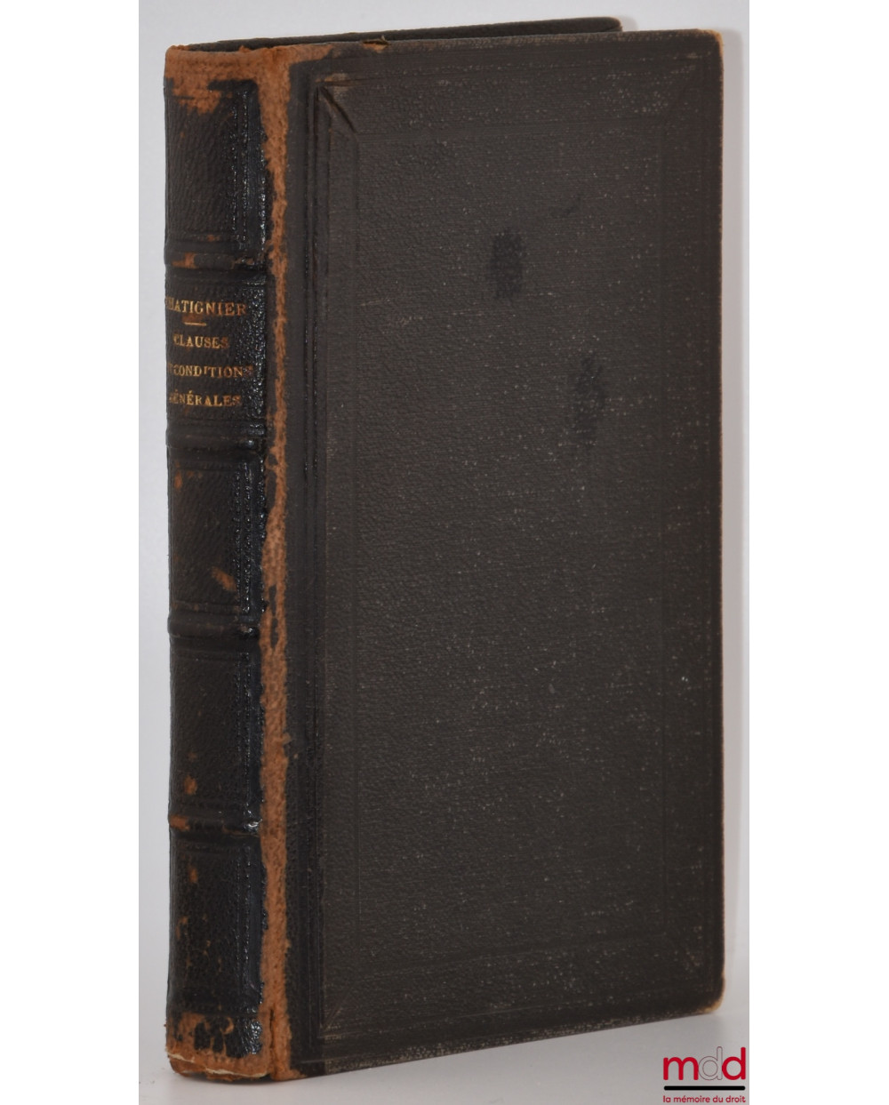 Description : petit in-8, demi-chagrin ébène, tit. doré sur dos à 4 nerfs, caissons encadrés de filets estampés à froid, (dos usé avec épidermures, mors fendillés, nb. annotations à l’encre), II-319 p.