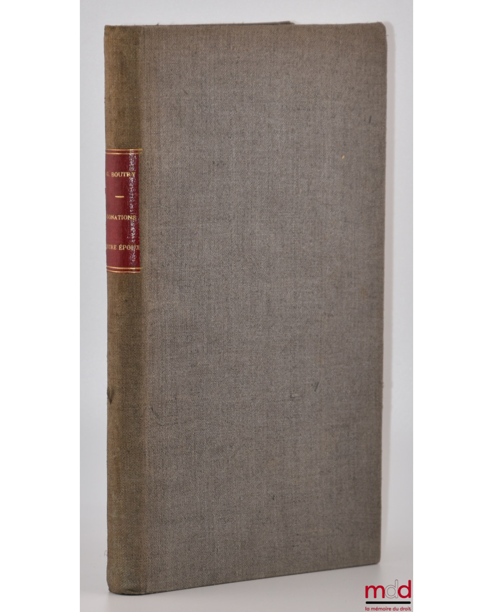 - in-8, pl. toile grise, tit. doré sur pc. de cuir grenat avec doubles filets dorés soulignants, tr. mouchetées (2 p. partielt déchirées avec très léger mq. de texte, rares rousseurs), 280 p.