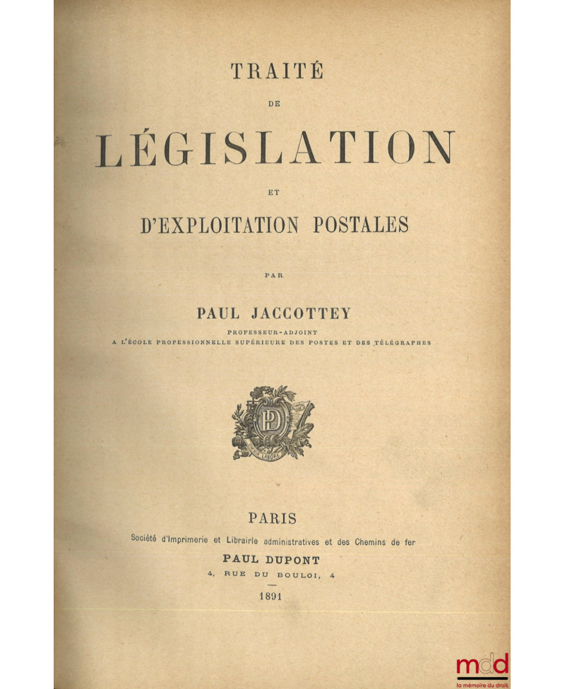 TRAITÉ DE LÉGISLATION ET D’EXPLOITATION POSTALES